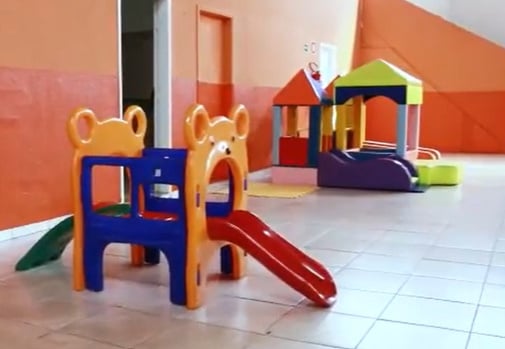 Além de se divertirem, nesse espaço os bebês recebem estímulos para o desenvolvimento motor.